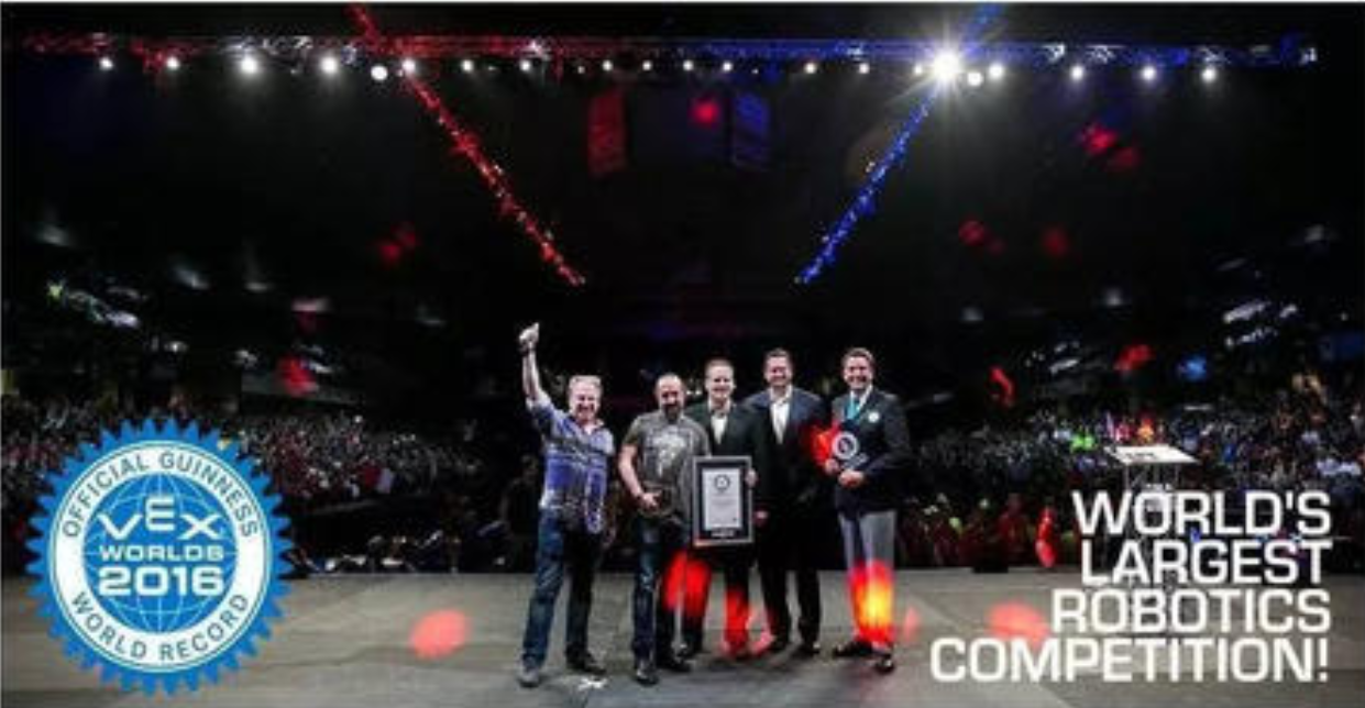 VEX機器人世界錦標賽每年吸引著全球40多個國家,數百萬青少年參與選拔,于2016年被載入《吉尼斯世界記錄大全》。