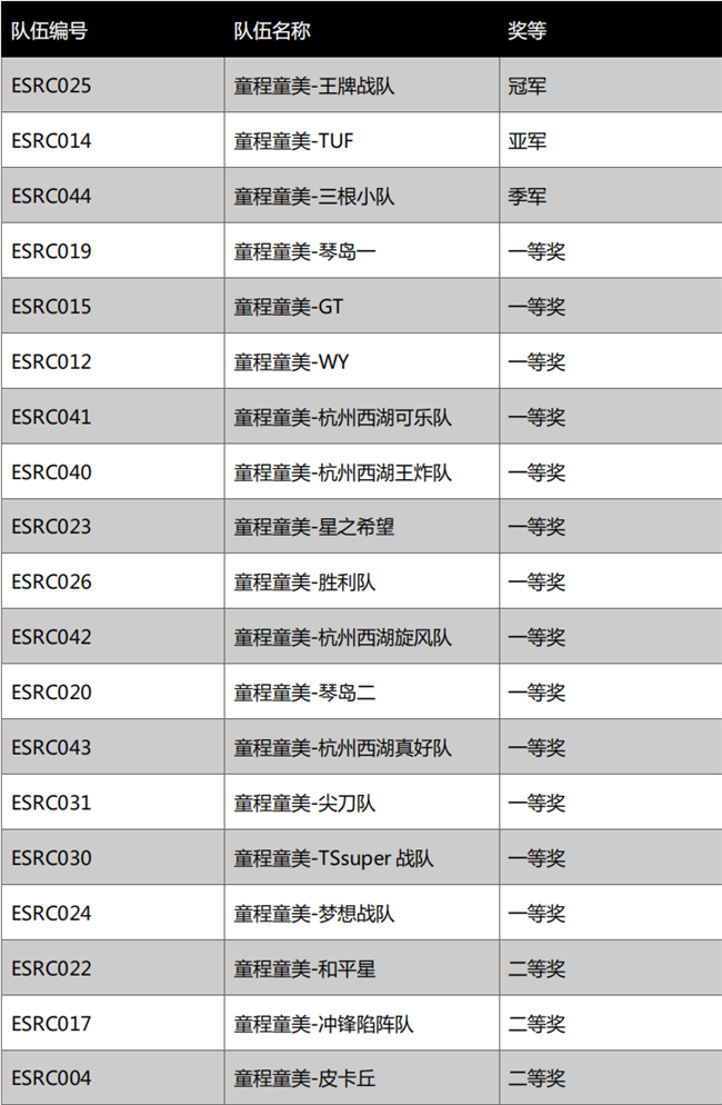 RoboRAVE大會設立冠亞季軍各一個,剩余挑戰營隊伍大約按照2/3/5的比例進行獎項劃分,一等獎占比20%,二等獎占比30%,三等獎占比50%。所有參賽隊伍均有獎,晉級比例按照大會參與人數而定。
