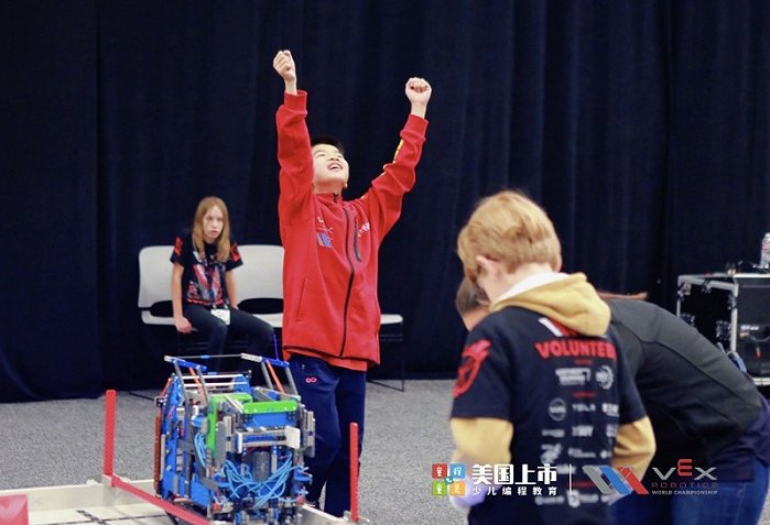 “參賽的機器人要求既能夠自動程序控制,又能夠通過遙控來控制,并且可以在特定的競賽場地上按照一定的規則要求進行比賽活動。”一位來自童程童美的教練介紹道:“陌生的環境、陌生的賽場,這對年齡尚小的參賽選手們來說是一種挑戰,他們不僅要克服技術上的難題,更要克服心理上的困難。”據童程童美相關負責人介紹,本次來到美國參加VEX世錦賽的童程童美學員,最小的孩子僅有7、8歲,年紀大一些的也不過14、15歲。